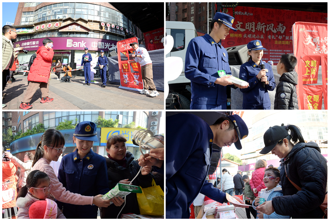 1月11日,郴州市“文明进小区 有礼‘邻’距离”活动在龙腾广场小区举行。郴州市消防救援支队以此次活动为契机,组织宣传服务队深入现场开展消防安全宣传志愿服务活动。