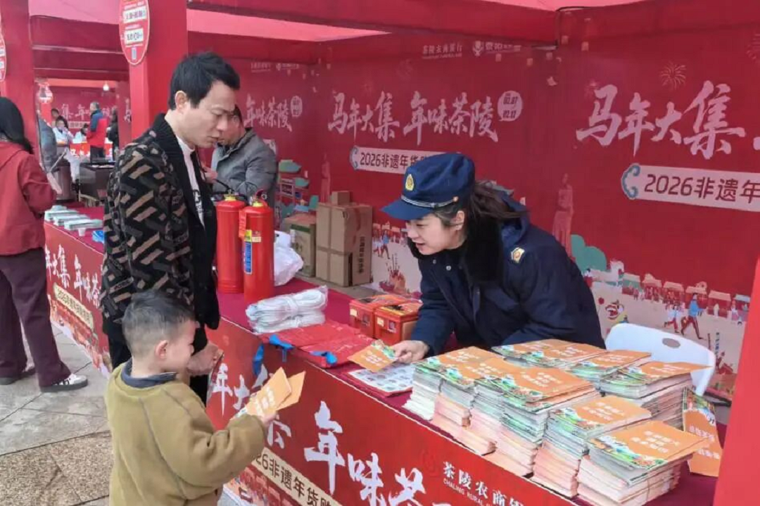 与此同时,茶陵县消防救援大队的宣传员们手持宣传资料,在热闹的集市中穿行,用亲切的乡音反复叮嘱群众用火用电、烟花爆竹燃放等注意事项。赶集的大爷接过宣传单,连连点头:“大过年的,你们还在忙,辛苦了!”