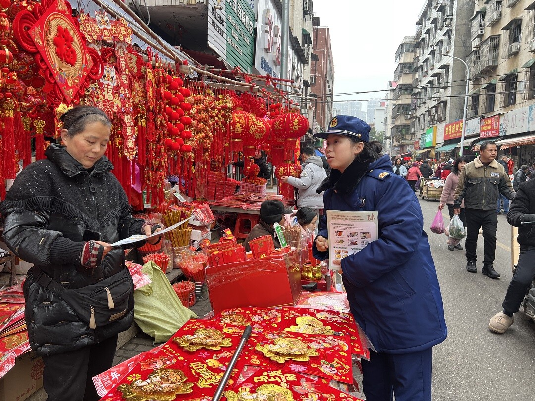 广泛发动力量,宣传工作多点开花。发动消防志愿者按区域实行任务分片包干,广泛开展消防宣传提醒服务。高新大队联合石新桥村村委工作人员,以“敲门入户”的方式深入村民家中,用通俗易懂的语言向村民讲解取暖、熏腊肉、燃放烟花爆竹等方面的火灾风险及防范措施。沅江大队联合沅江市丰彩好润佳商贸有限公司开展“消防知识进万家”主题宣传活动,将消防安全知识融入市民的日常购物中,并将精心设计的消防宣传单页打包进淘宝闪购、美团外卖等线上订单包裹中。南县大队结合南县德昌未来城年货节活动,同步开展形式多样、内容丰富的消防宣传活动,普及用火用电用气安全常识,夯实群众消防安全基础,切实降低火灾风险。桃江大队深入辖区汽车站,向返程旅客发放安全知识手册,提醒旅客在行程中注意消防安全,助力春运期间旅客返程安全。春节期间,全市共发送消防安全提示2万余条。